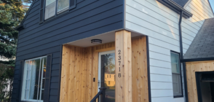23718 Cedar Rd, Beachwood, OH 44122 Experience the perfect blend of contemporary flair and classic charm in this reimagined 4-bedroom, 2-bath Cape Cod located within walking distance of Legacy Village and Beachwood Mall. The striking exterior features deep charcoal siding and natural wood accents, opening